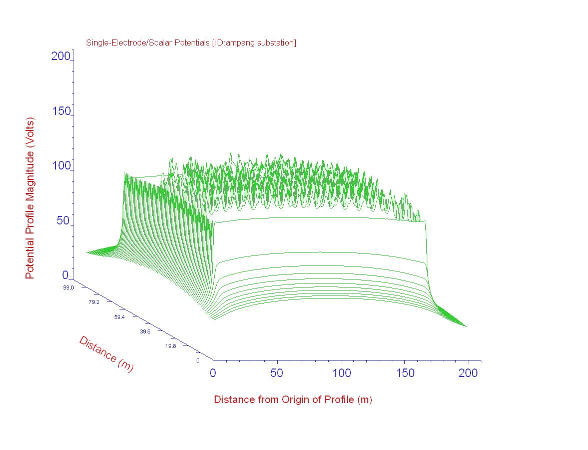 - calculations and geographical plots of touch, step and surface potentials within and around the high voltage installation